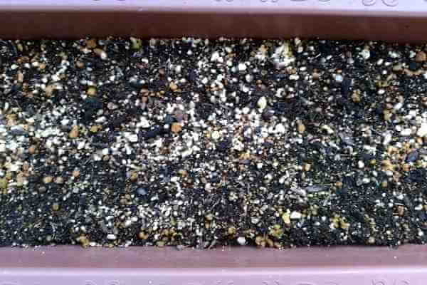 12Lタイプの横長プランターに種をまく場合は、等間隔に3箇所に種をまくか発芽後の苗を植えるようにします。