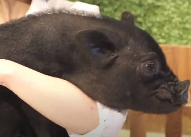 これは、日本初のマイクロブタと触れ合うことのできるカフェのことです。