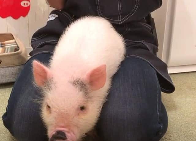 懐き方次第ではマイクロブタが膝に乗ってくれることもあります。