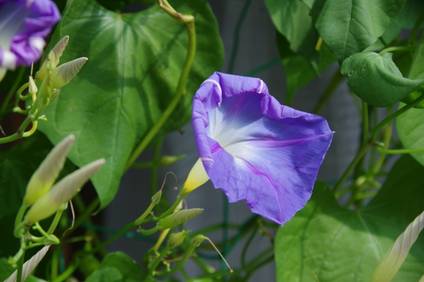 朝顔(アサガオ)はエビガラスズメの幼虫の好物です。