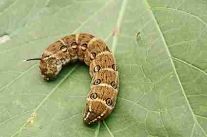 スズメガの幼虫の模様は天敵を威嚇するカモフラージュ
