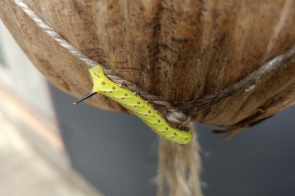 スズメガの幼虫は、日本国内では他の蛾の幼虫と変わりないです。
