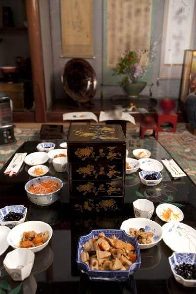 食べる料理は膳、飾る用は重箱でそれぞれが用意され、前者がおせちと呼ばれるに至ります。