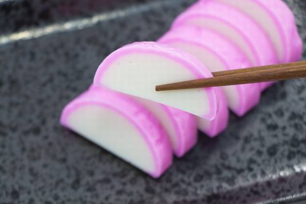 紅白のかまぼこは赤色が魔除け、白色は浄化を意味することから紅白持ちなどでも有名な色の組み合わせです。更に、かまぼこは初日の出の形に見えるので、そういうところでも縁起が担がれています。