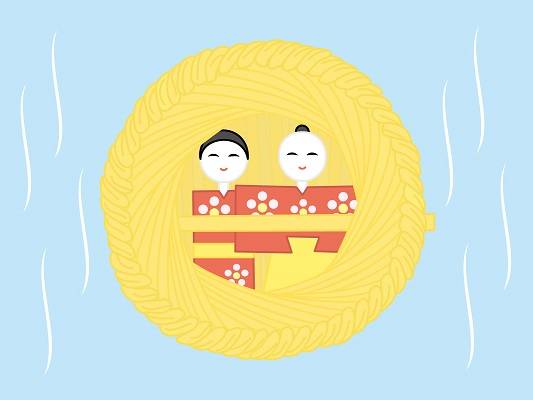 黄色は月もしくは菜の花を、オレンジは太陽を表しています。