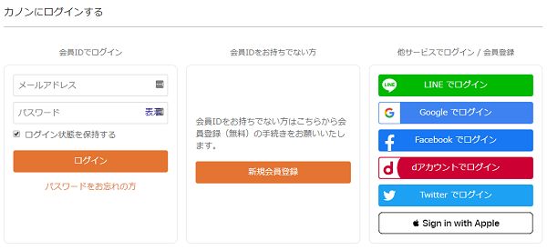 LINEやGoogle、Facebookにdアカウント、そしてTwitterやAppleといった他サービスでログインすることも可能です。