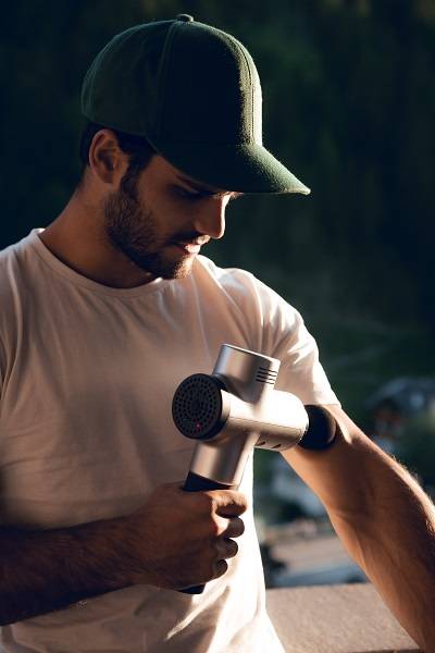 特定の部位に関係なく、マッサージガンの使い方に共通するポイントがあります。まず、本体のグリップをしっかりと握り、振動するヘッドを軽く押し当てるように当てることが大切です。