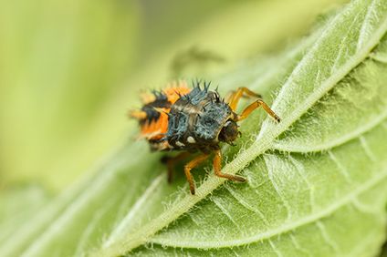 ナミテントウの幼虫はとげとげした、いかにも虫の幼虫であるという気持ちの悪い外見をしています。