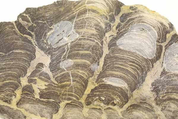 化石が先カンブリア時代のストロマトライトと認められるには、内部にこの縞模様が存在することが必要です。