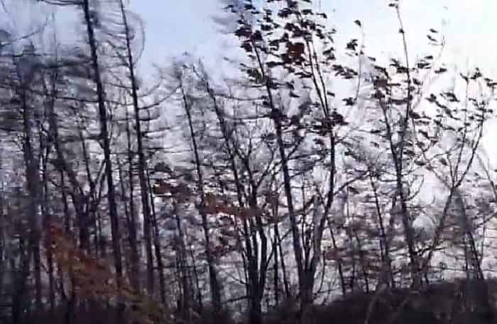瞬間的に風が強くなると樹木も大きく揺れていますし、電線もしなっています。