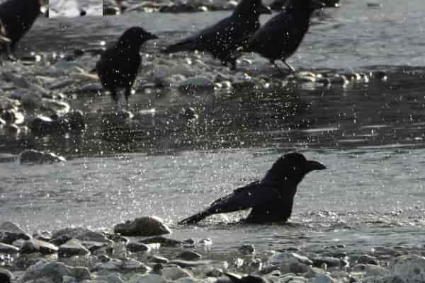 ただしカラス(烏)の水浴びの時間が短く、まるで行水のように思ったり連想するのは難しくないことです。