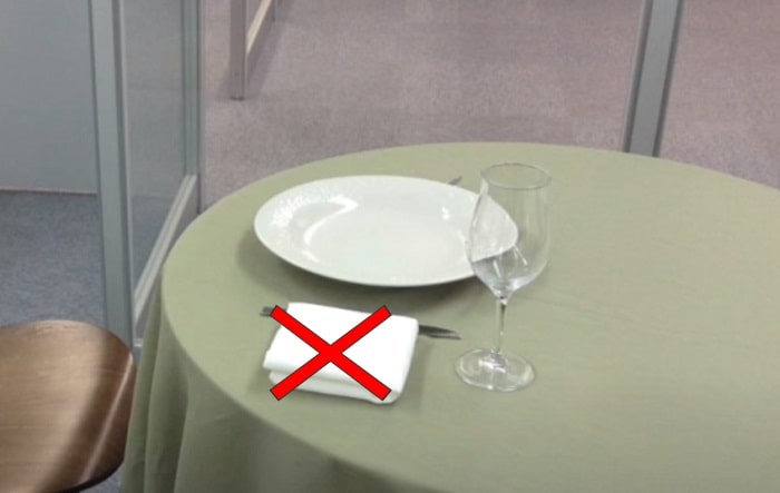 ナプキンそのものは多少雑に置いたり汚れが見えても許容されます。