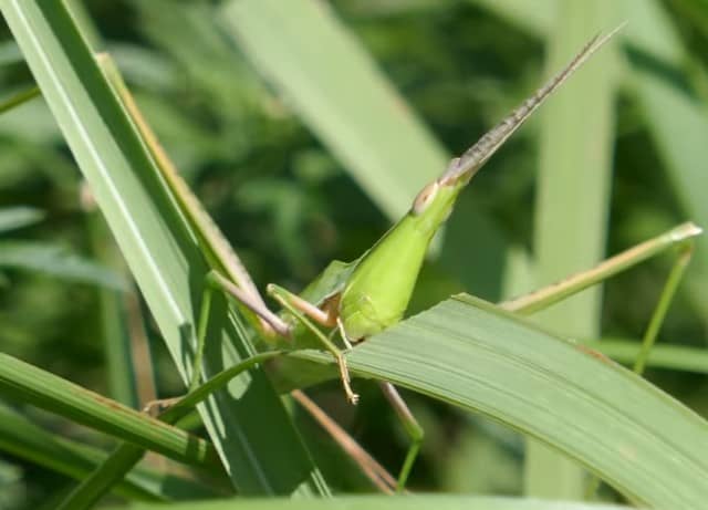 ショウリョウバッタはイネ科の植物を好んで餌にする昆虫です。