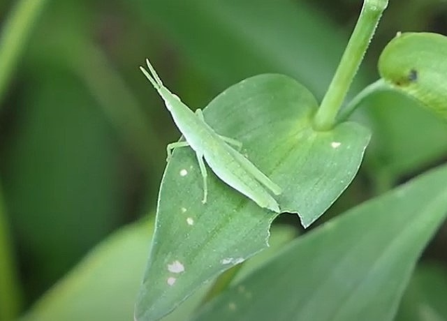 卵から孵ったショウリョウバッタは見た目こそ大人です。