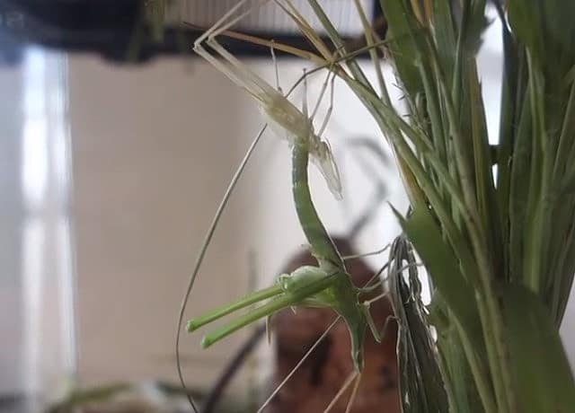 脱皮直後は脆弱な状態なので、ショウリョウバッタの扱には注意が必要です。