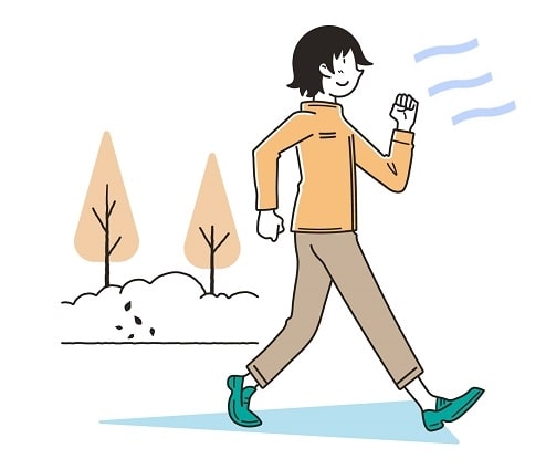 それぞれのペースはありますが、人は時速4~5kmほどで歩くので、それより若干風の抵抗を受ける程度です。