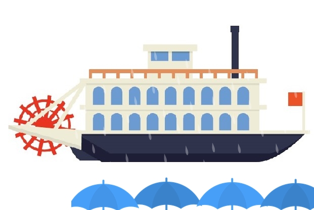 蒸気船マークトウェイン号のような大きく安定していてゆっくり運航する乗り物は、雨が多少強くても楽しめる可能性が高いです。