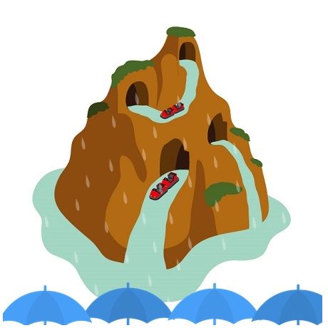 しかし運営を見合わせる事態にならなくても、雨が視界を遮り、雨音が邪魔になるアトラクションは楽しめないです。