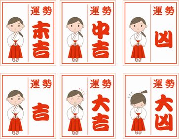 運勢的には大吉が良好で、次いで吉と中吉や小吉に末吉、そして凶と大凶の並び順です。