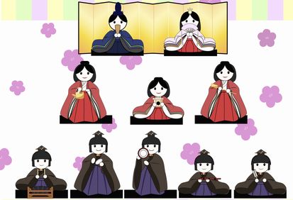 ですが、3段や5段、7段といったひな人形には、お雛様お内裏様、それから三人官女、3段目には五人囃子が登場します。