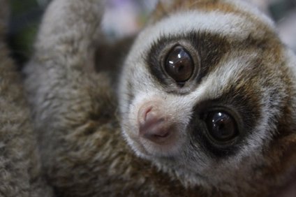 スローロリスは顔が特徴で特に目に個性が表れていることで有名です。