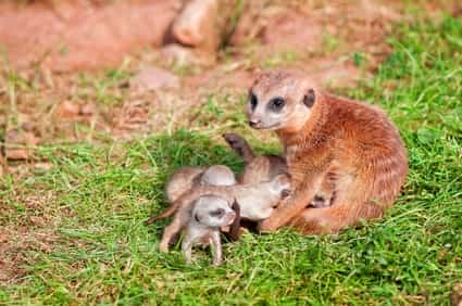 ミーアキャットは、1年に何度も出産し大規模な群れでは30匹以上もの群れを作る動物です。