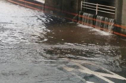 その一方で猛烈な降水量は低地を冠水させ道路を川のようにしてしまいます。