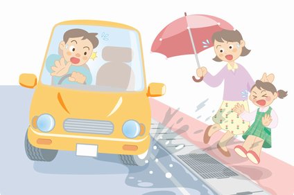 近くを車が高速で通過しても、その影響で飛ぶ水しぶきは小さいです。
