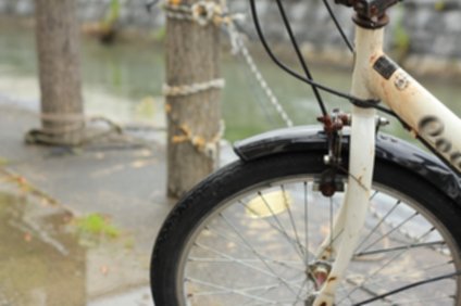 自転車が近くを通る際は水しぶきを浴びないように回避します。