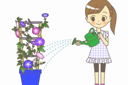 アサガオは早朝から太陽の位置が高くなるまでの間、その中でも比較的涼しい時間帯に与えるのがコツです。
