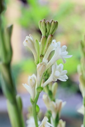チューベローズが花びらを閉じている時は、余計に淑やかな印象を与えます。